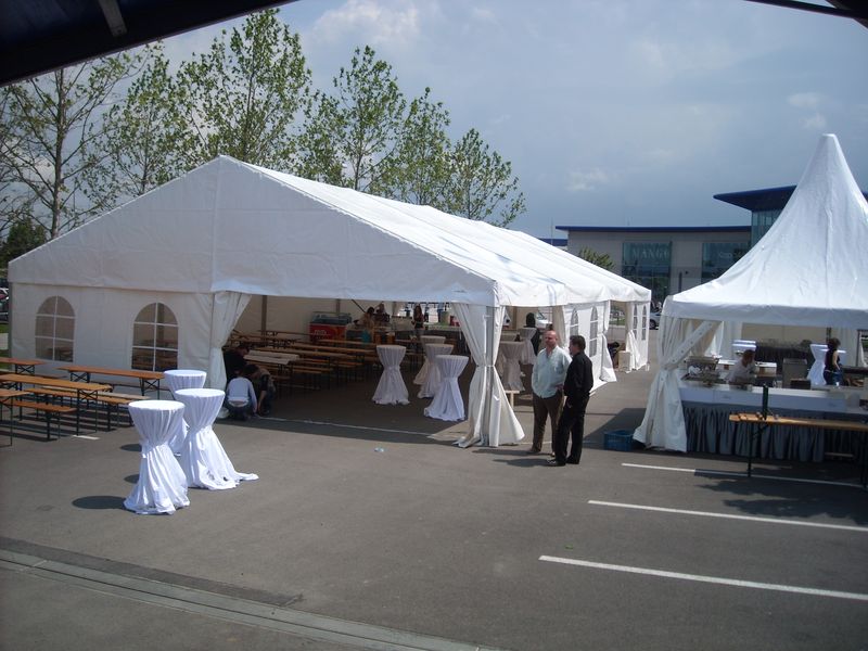 Párty stany na přání vybavíme podlahou, pódiem, kobercem, nábytkem, vytápěním, osvětlením, květinami popř. dekoracemi podle Vašeho přání.